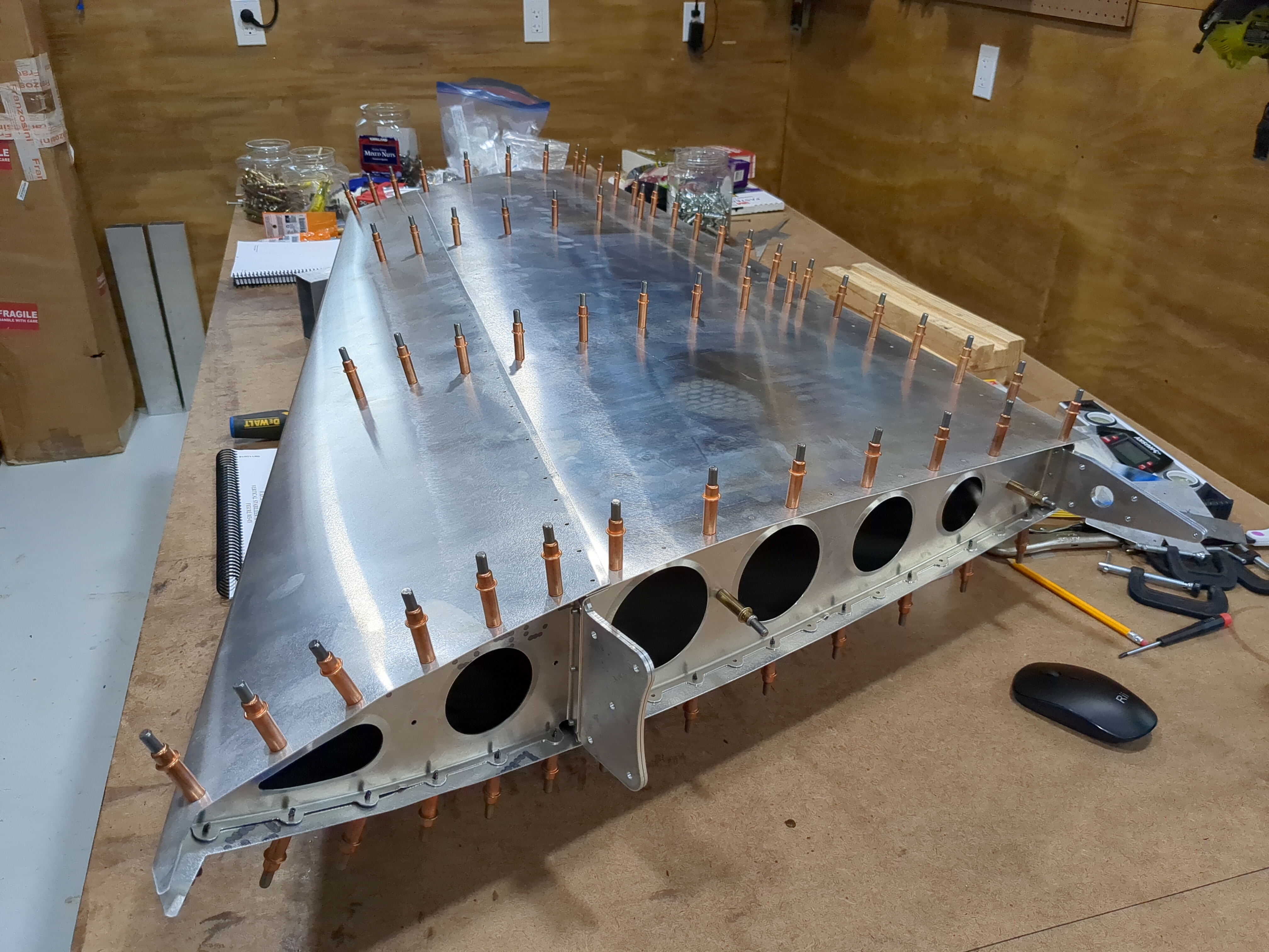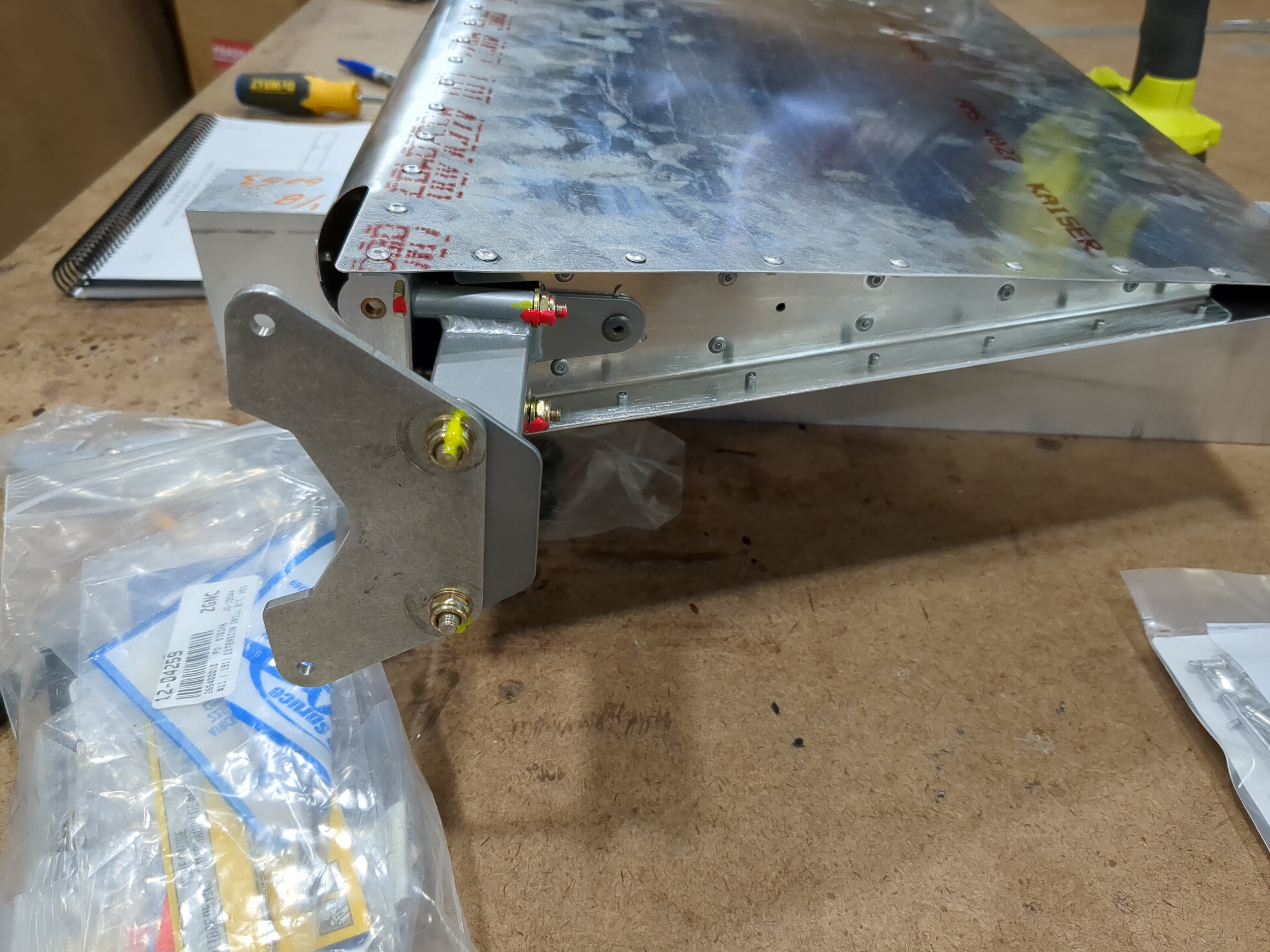 Oops rivets arrived, finished up the rudder, put the control horn on. Learning how to use my new tool, the edge roller, rolled the vertical stabiliser nose skin and fit it to the rest of the structure, next is levelling and riveting...
