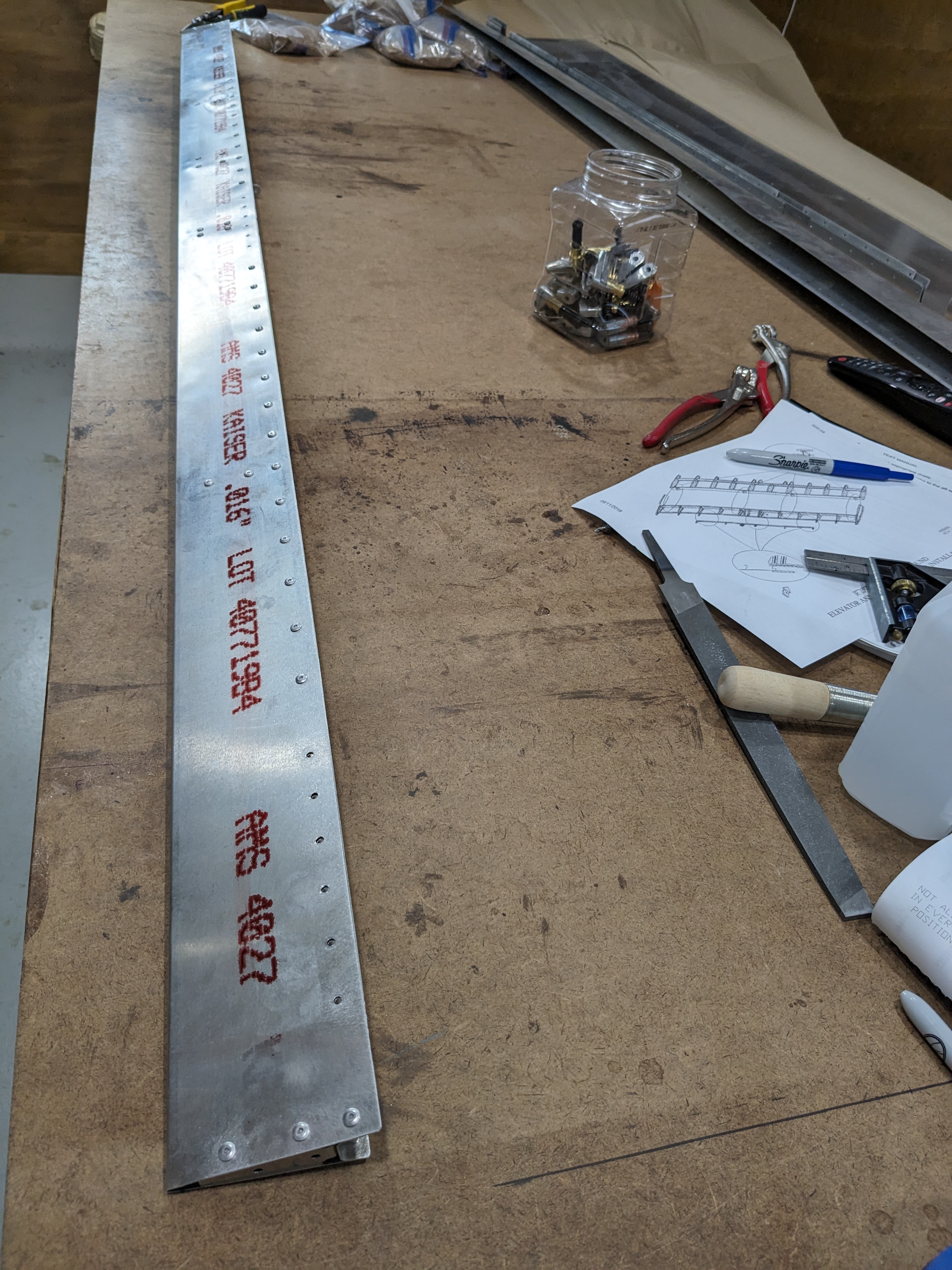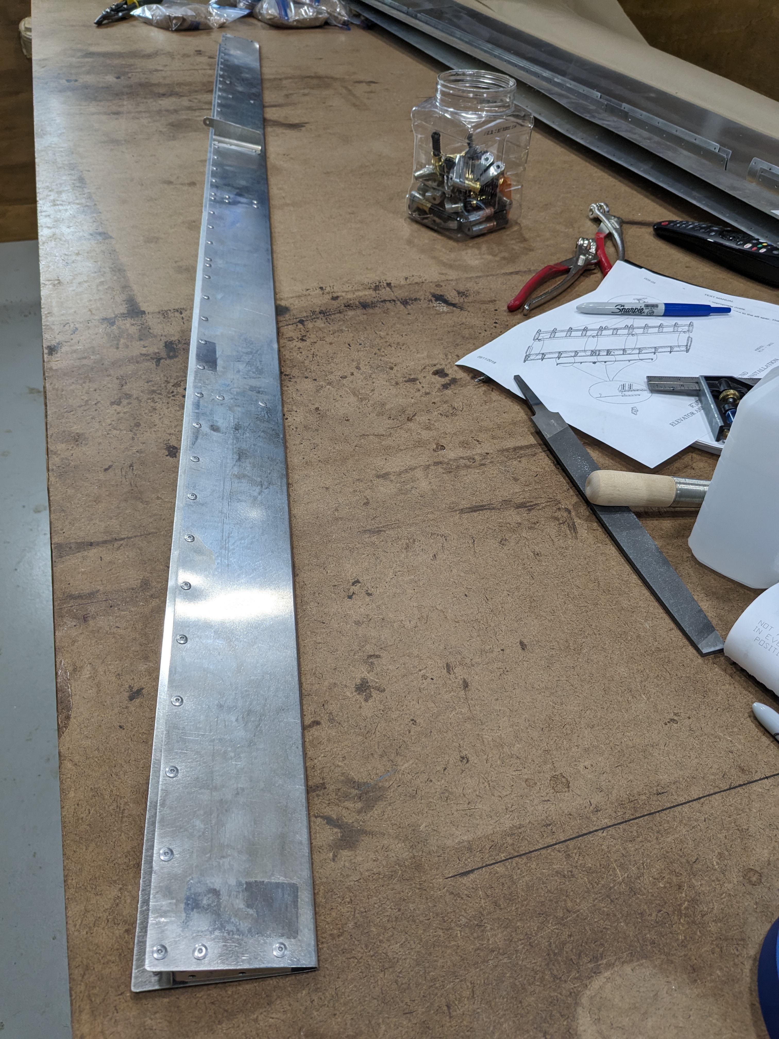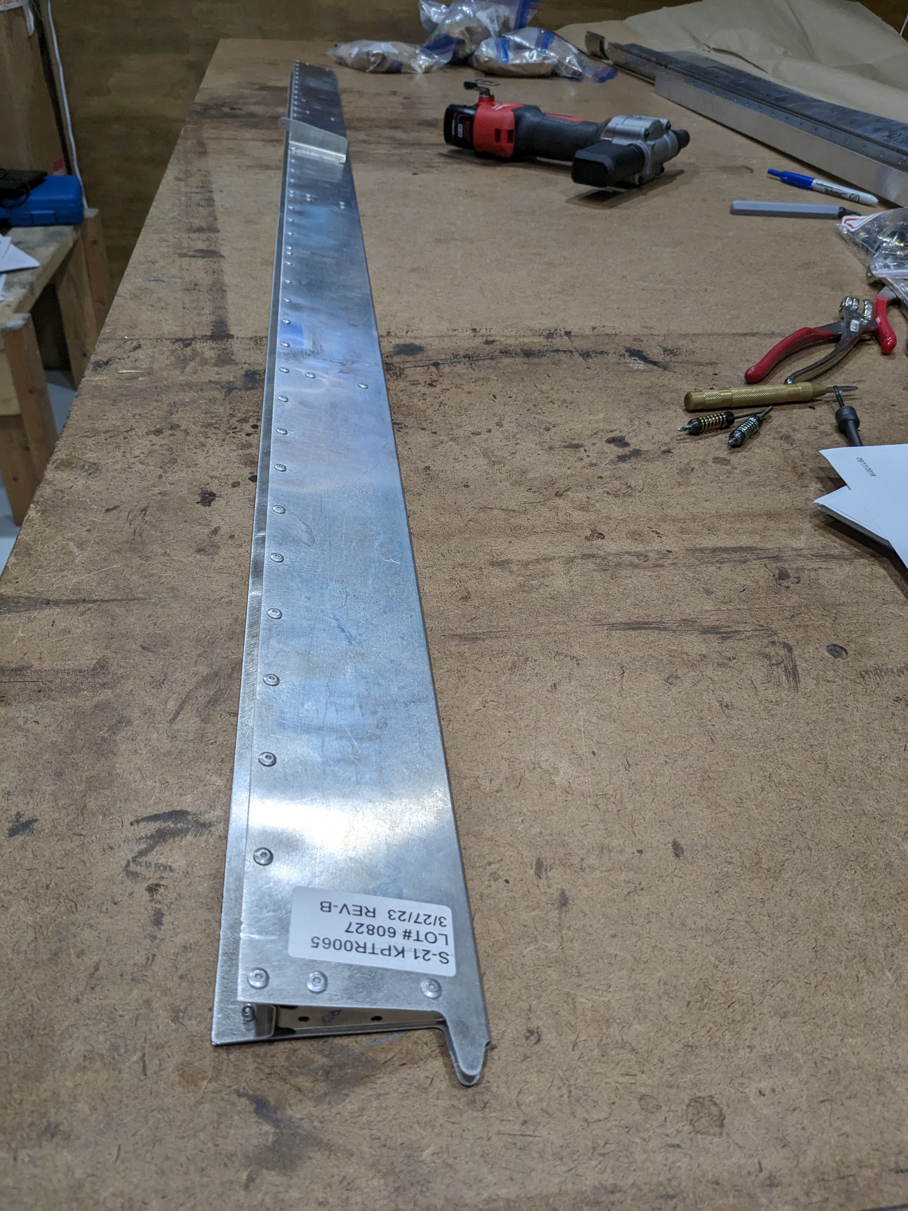 Date: 20240301 Time: 3.0 Dollars: $0.0 Title: Elevator trim tab Details: Finished the trim tab and put in some missing rivets in the flaps/aileron that I couldn't get to with the puller.